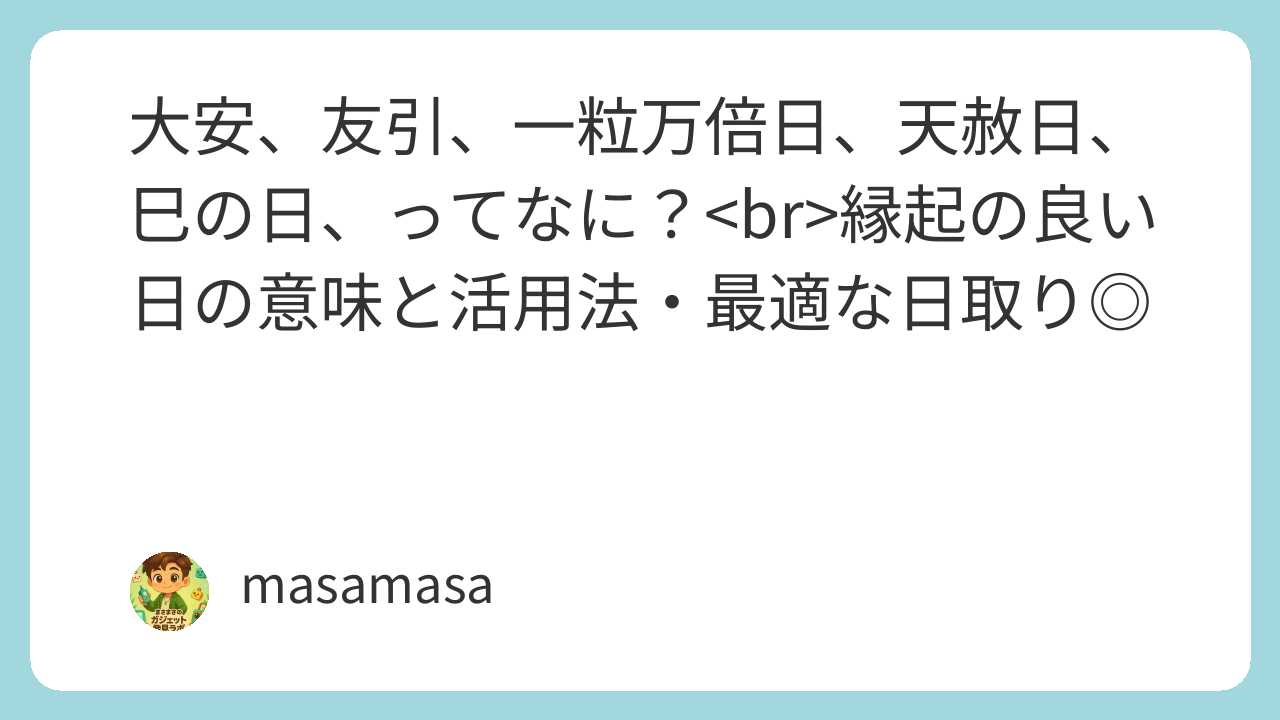 ここでは、「まさまさの運勢日めくり」で紹介される代表的な選日について、その意味や、どんな行動に適しているかをご紹介します。