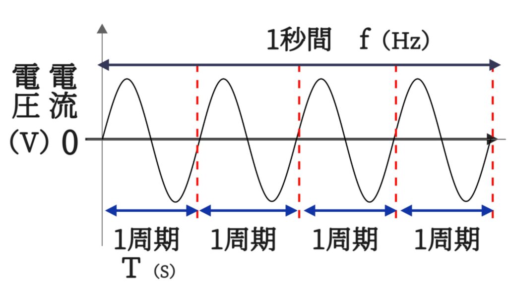 簡単だよ。たとえば50Hzなら、T=1/50=0.02秒。つまり、1波が0.02秒で1往復してるってこと。(1秒間で波が50往復)